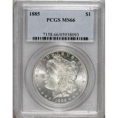<B>1885 $1 MS66 PCGS.</B></I> PCGS Population (1105/73). NGC Census: (1314/158). Mintage: 17,787,768. Numismedia Wsl. Price for NGC/PCGS coin in MS66: $320. (#7158)<BR><BR><b>Shipping:</b> Coins & Currency (<a target="_blank" href="http://www.heritageauctions.com/common/shipping.php">view shipping information</a>)