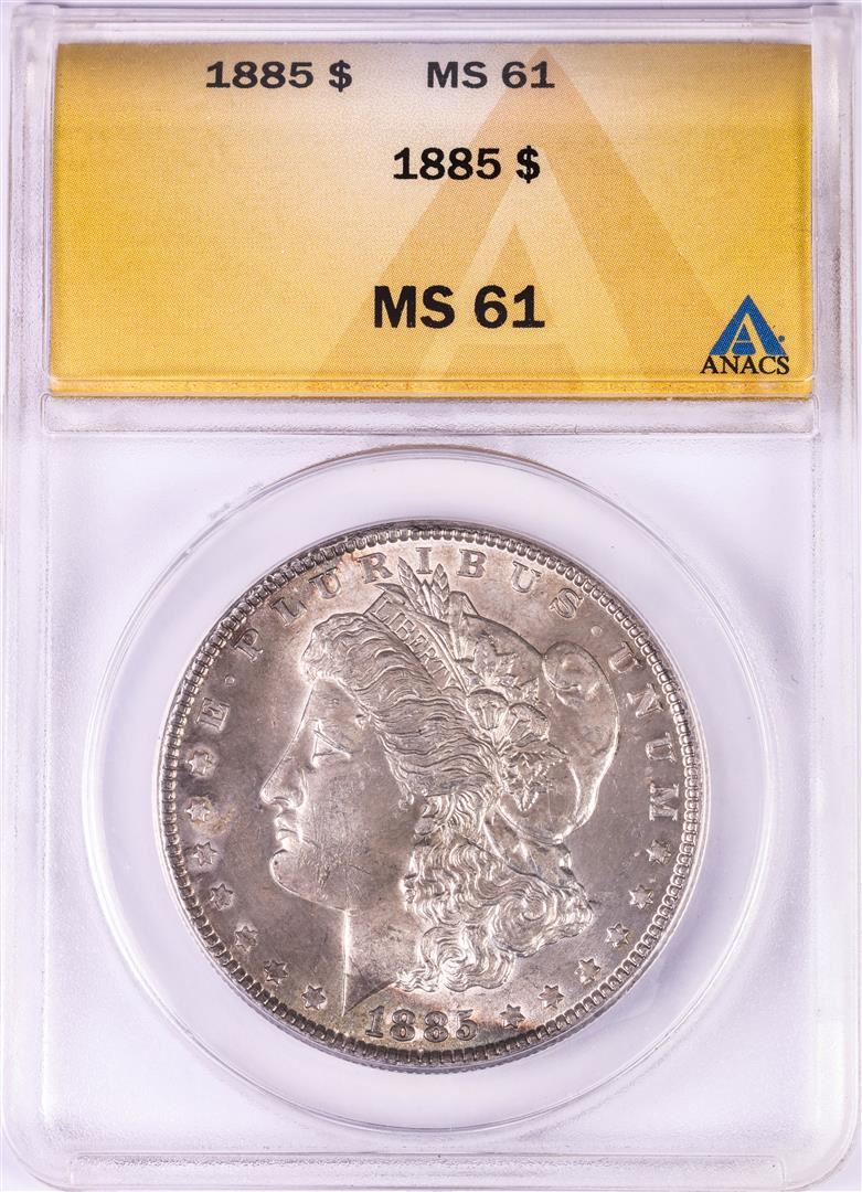 One 1885 $1 Morgan Silver Dollar Coin ANACS MS61. ANACS Certified.