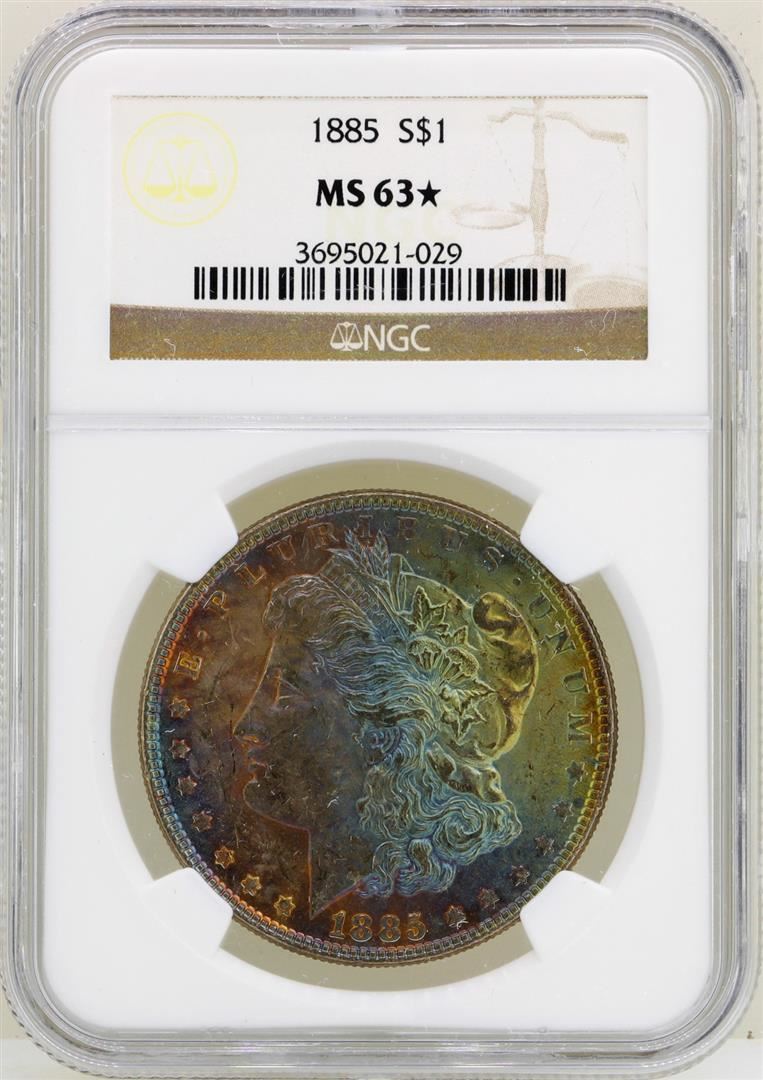One 1885 $1 Morgan Silver Dollar Coin NGC MS63* AMAZING TONING. NGC Certified.