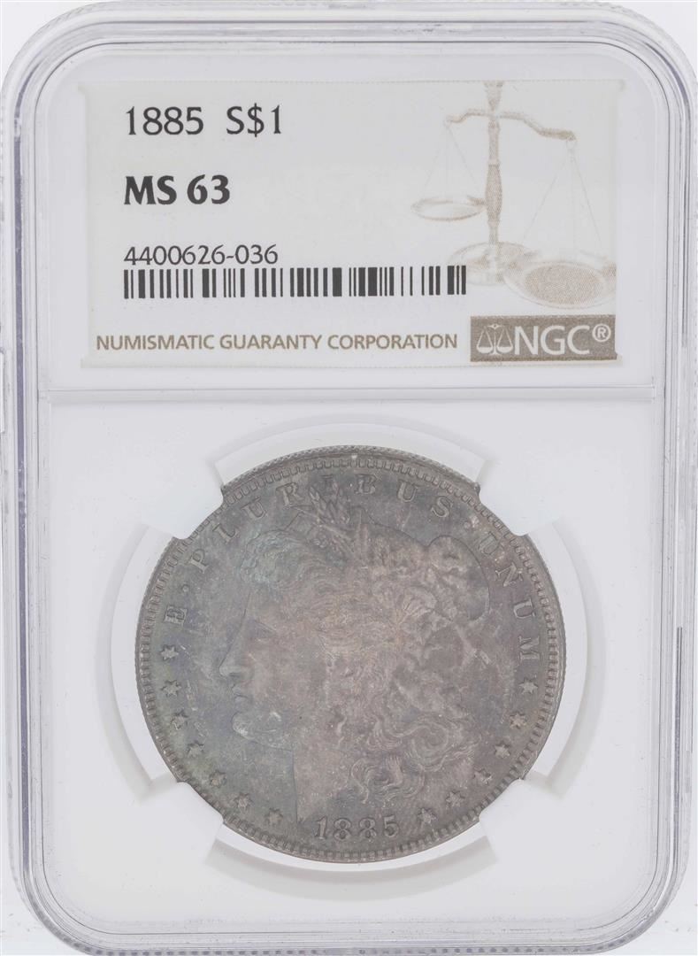 One 1885 $1 Morgan Silver Dollar Coin NGC MS63. NGC Certified.