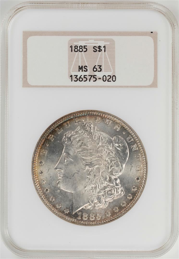 One 1885 $1 Morgan Silver Dollar Coin NGC MS63. NGC Certified.