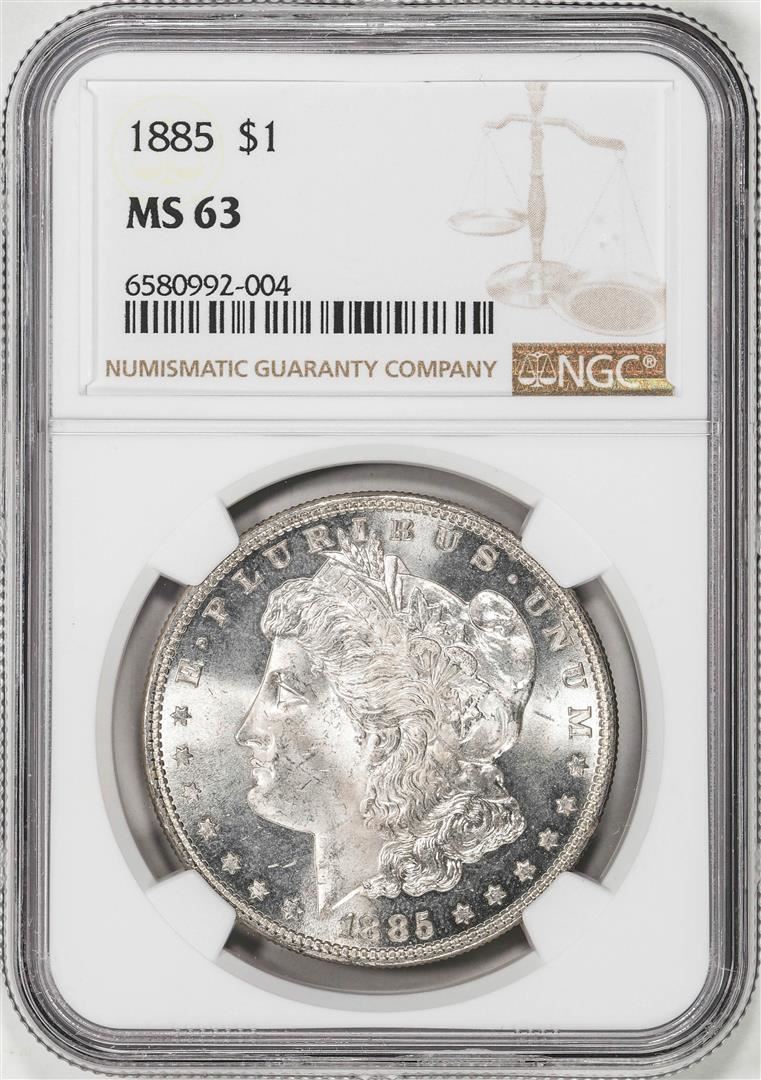 One 1885 $1 Morgan Silver Dollar Coin NGC MS63. NGC Certified.