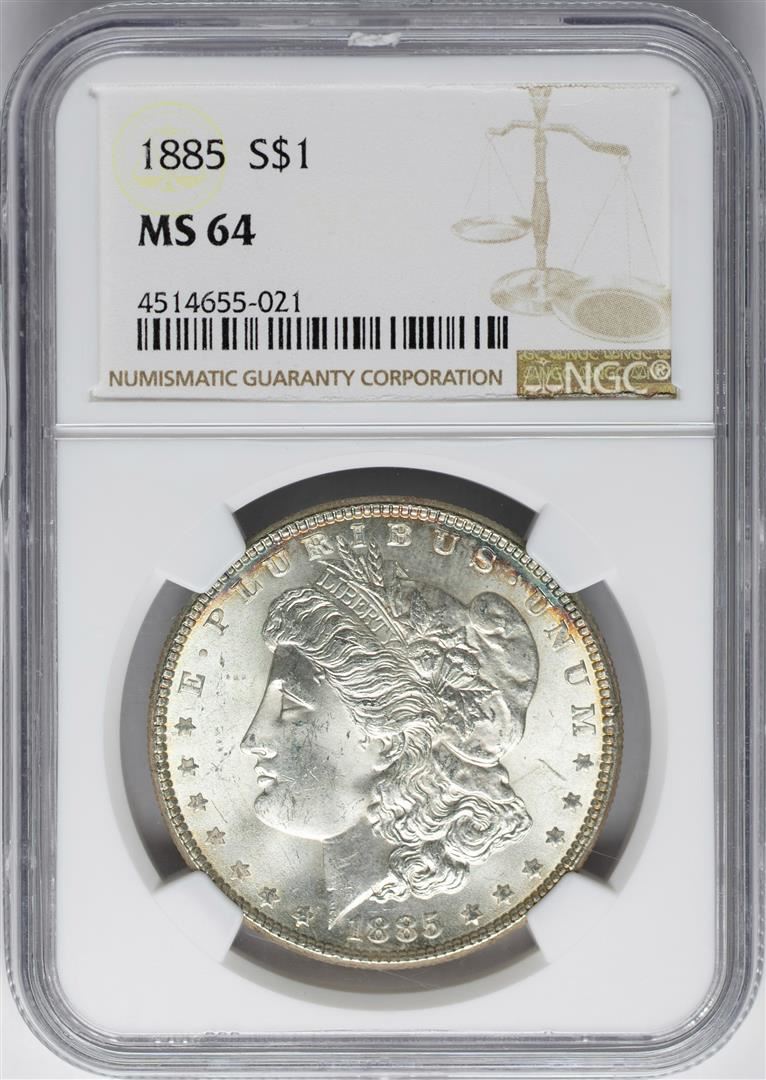 One 1885 $1 Morgan Silver Dollar Coin NGC MS64 Nice Toning. NGC Certified.