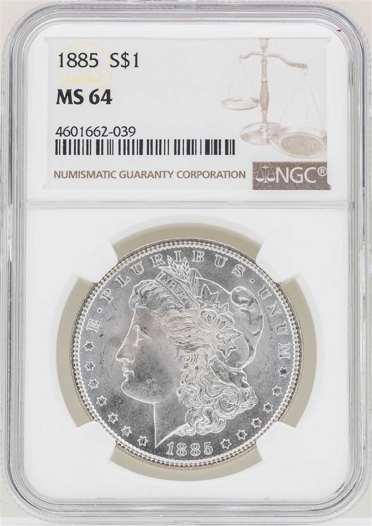 One 1885 $1 Morgan Silver Dollar Coin NGC MS64. NGC Certified.