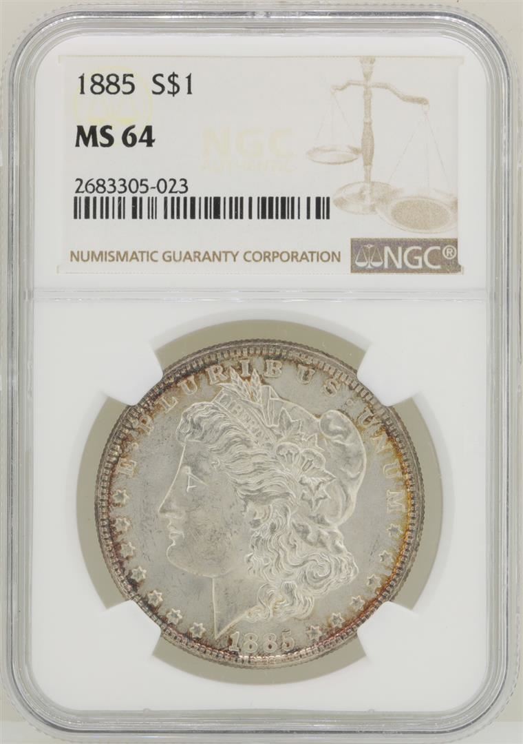 One 1885 $1 Morgan Silver Dollar Coin NGC MS64. NGC Certified.