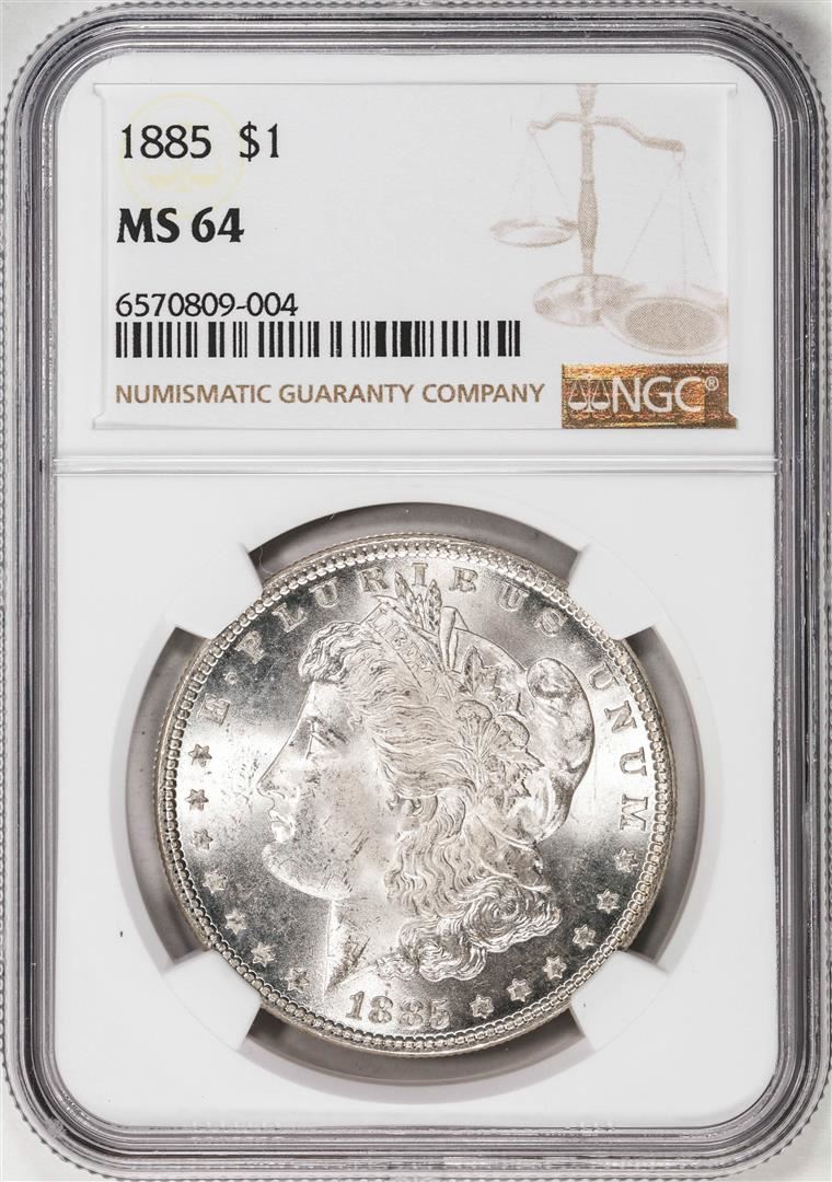 One 1885 $1 Morgan Silver Dollar Coin NGC MS64. NGC Certified.