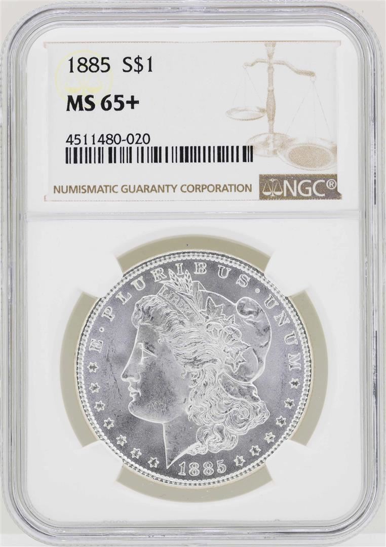 One 1885 $1 Morgan Silver Dollar Coin NGC MS65+. NGC Certified.