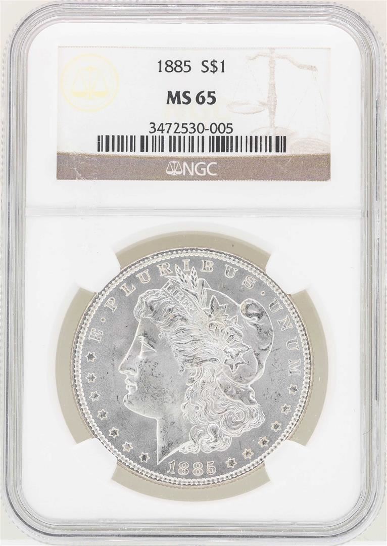 One 1885 $1 Morgan Silver Dollar Coin NGC MS65. NGC Certified.
