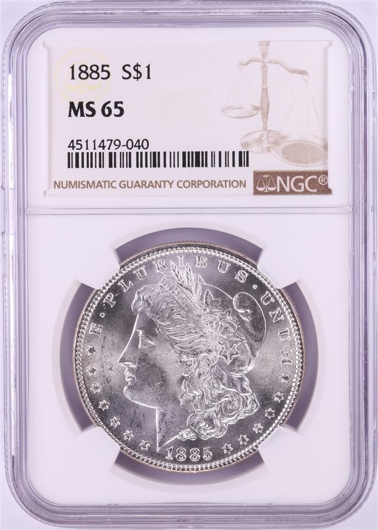 One 1885 $1 Morgan Silver Dollar Coin NGC MS65. NGC Certified.
