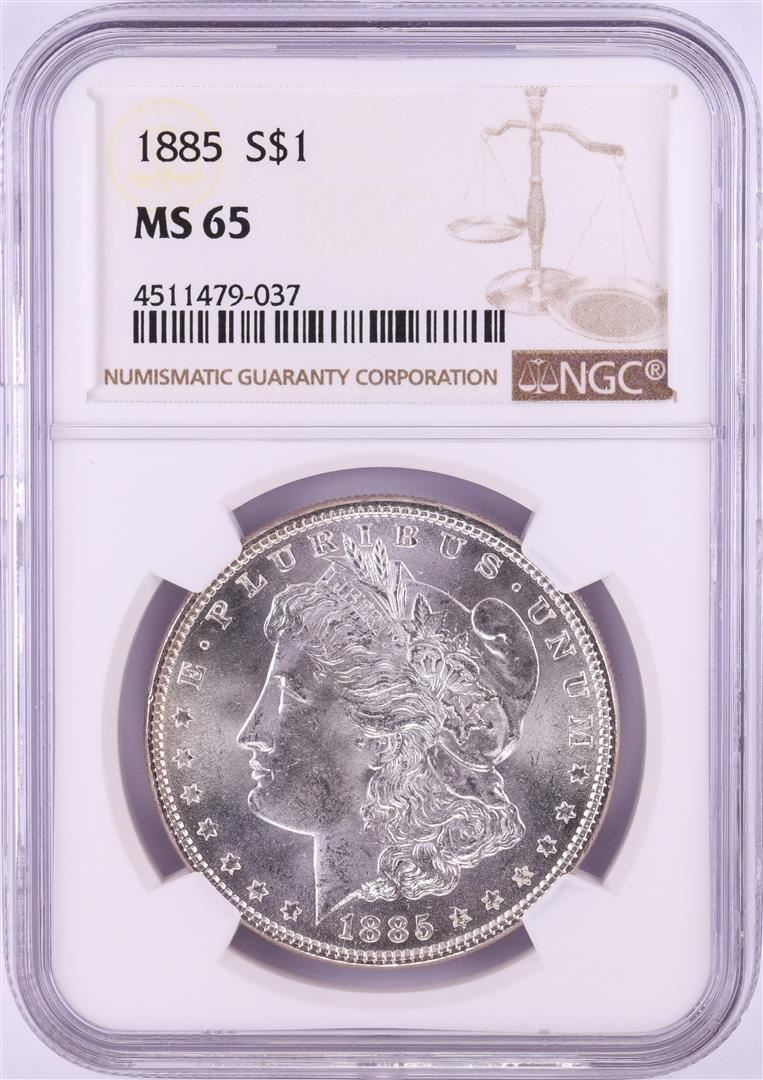 One 1885 $1 Morgan Silver Dollar Coin NGC MS65. NGC Certified.