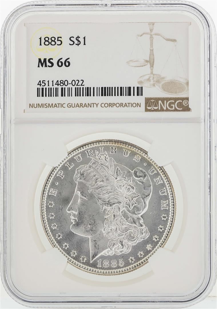 One 1885 $1 Morgan Silver Dollar Coin NGC MS66. NGC Certified.