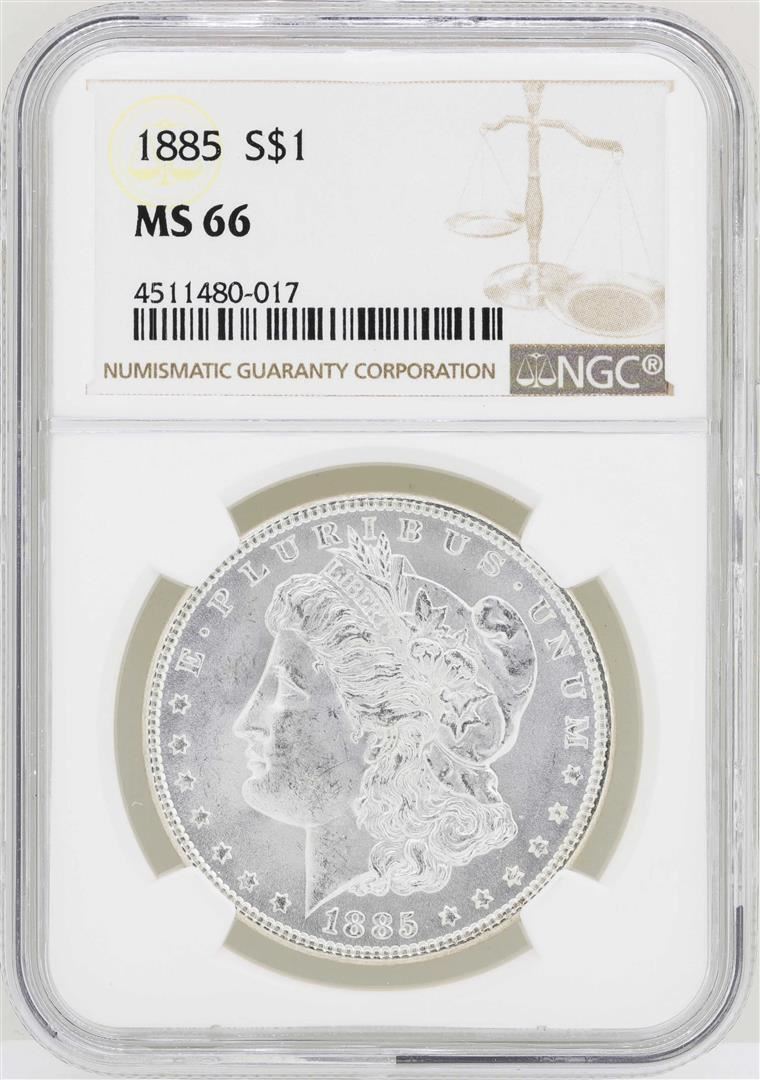 One 1885 $1 Morgan Silver Dollar Coin NGC MS66. NGC Certified.