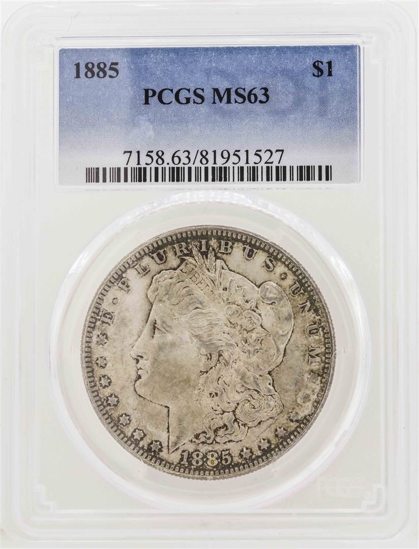 One 1885 $1 Morgan Silver Dollar Coin PCGS MS63. PCGS Graded.