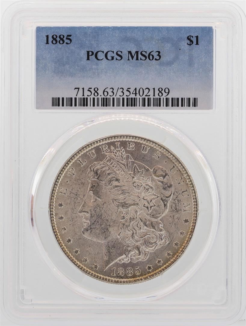 One 1885 $1 Morgan Silver Dollar Coin PCGS MS63. PCGS Certified.