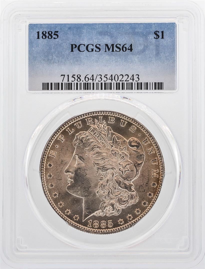 One 1885 $1 Morgan Silver Dollar Coin PCGS MS64. PCGS Certified.