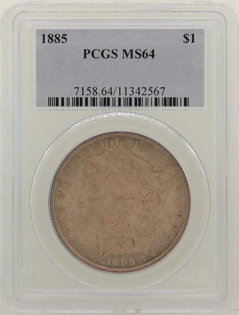 One 1885 $1 Morgan Silver Dollar Coin PCGS MS64. PCGS Graded.