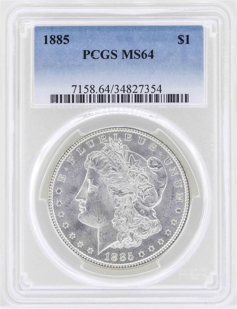 One 1885 $1 Morgan Silver Dollar Coin PCGS MS64. PCGS Graded.