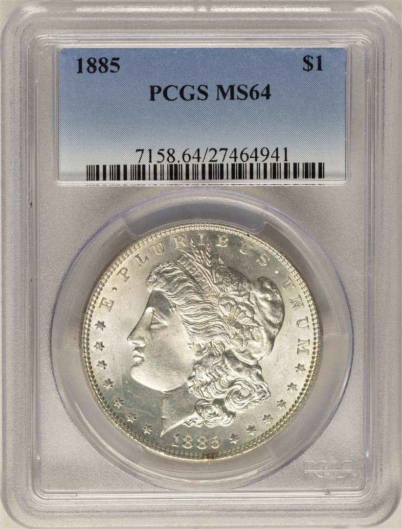 One 1885 $1 Morgan Silver Dollar Coin PCGS MS64. PCGS Graded.