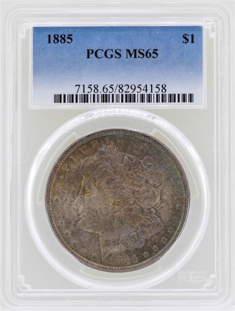 One 1885 $1 Morgan Silver Dollar Coin PCGS MS65. PCGS Graded.