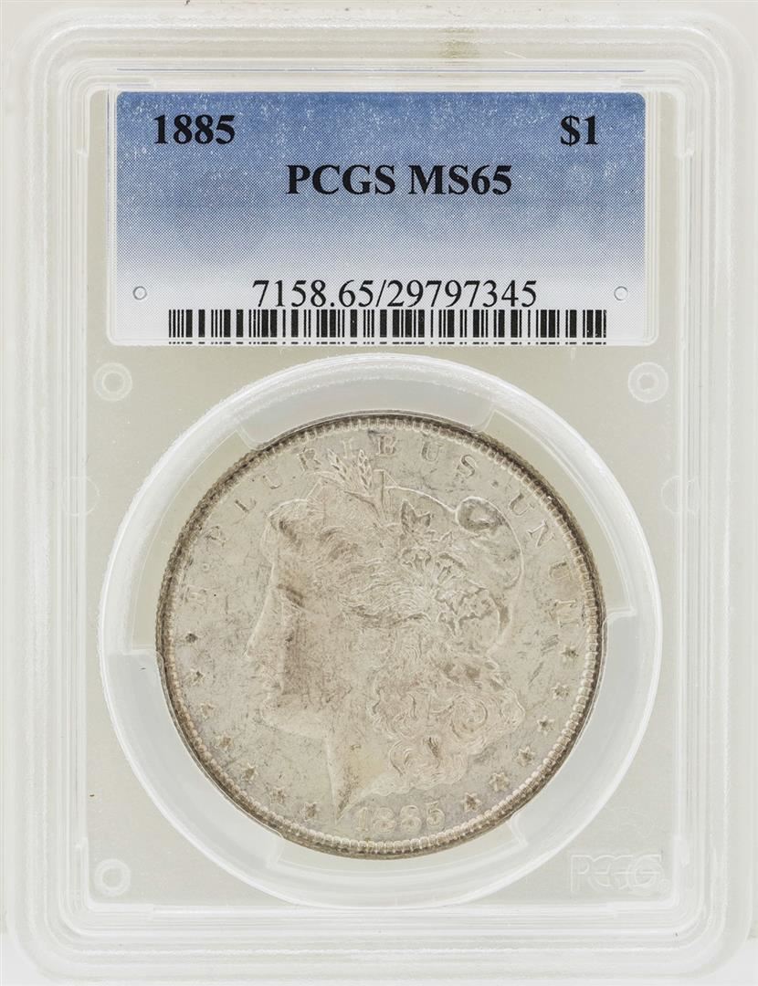 One 1885 $1 Morgan Silver Dollar Coin PCGS MS65. PCGS Graded.