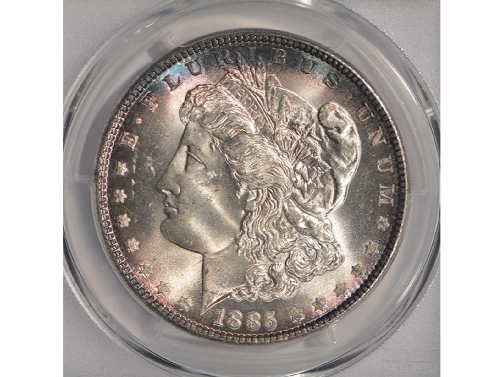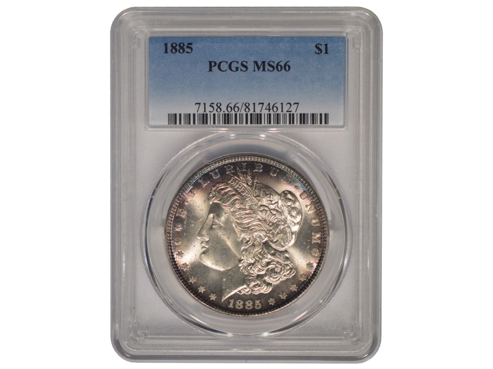 One 1885 $1 Morgan Silver Dollar Coin PCGS MS66.