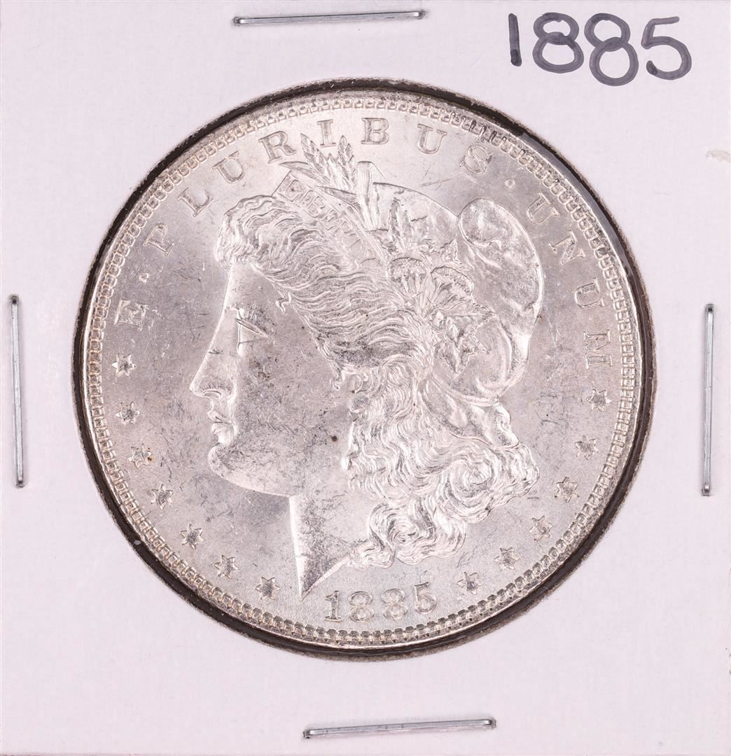 One 1885 $1 Morgan Silver Dollar Coin.
