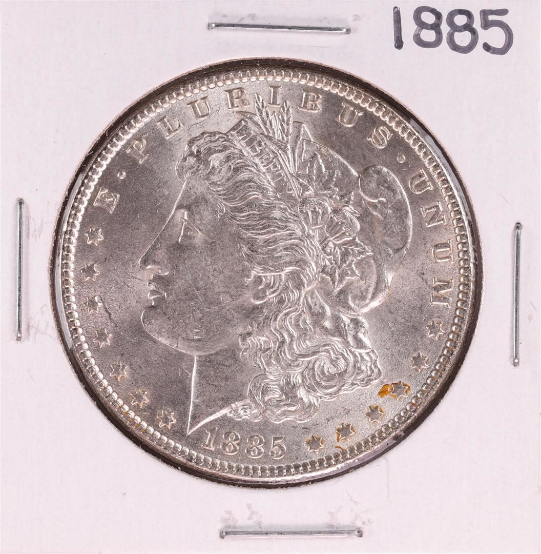 One 1885 $1 Morgan Silver Dollar Coin.