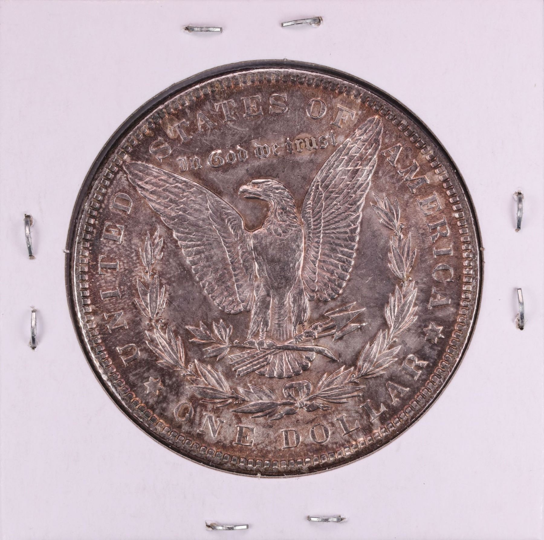 Bidders are advised that certain types of plastic may react with a coins metal or transfer plasticizer to notes and may cause damage. Caution should be used to avoid storage in materials that are not inert.