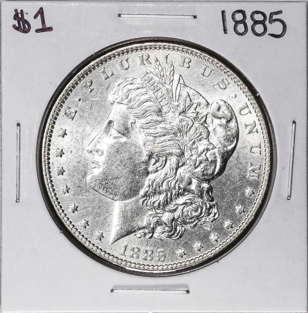 One 1885 $1 Morgan Silver Dollar Coin.