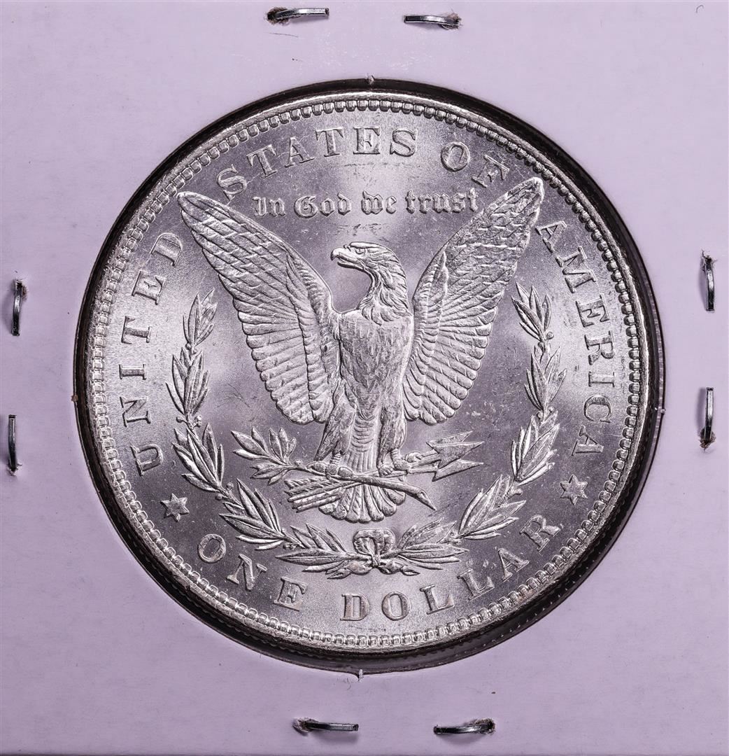 One 1885 $1 Morgan Silver Dollar Coin.