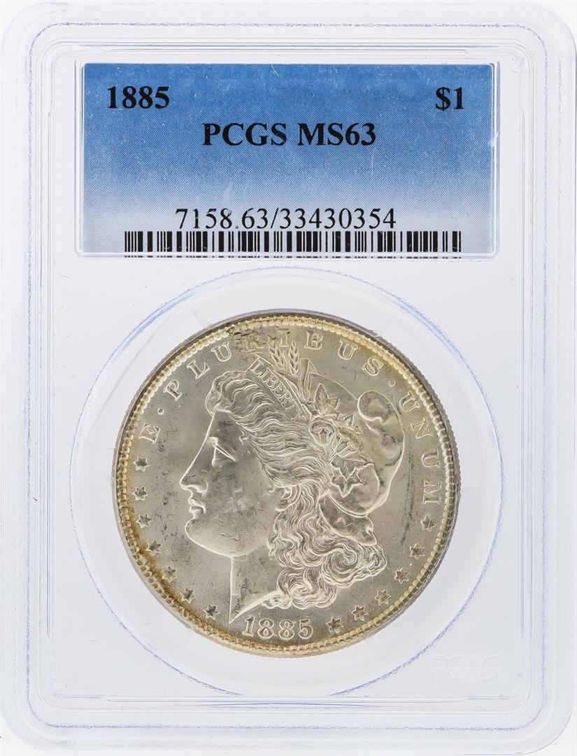 One 1885 $1 Morgan Silver Dollar PCGS Graded MS63. PCGS Graded.