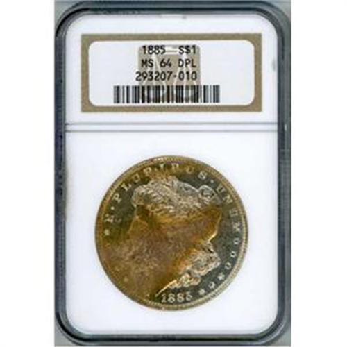 Somewhat uneven reddish brown toning obscures part of the design on this otherwise deeply mirrored specimen. As the photograph shows, this isn’t a coin for just any collector, so inspection is recommended.