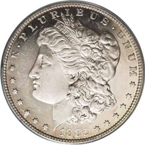 <B>1885 $1 PR63 Deep Cameo ANACS.</B></I> The 1885 proof Morgan is not known for exhibiting cameo contrast, and Deep Cameos are virtually unobtainable. Two of the grading services--PCGS and NGC--for example, have seen a mere three Deep Cameos in all grades. The motifs of the ANACS-graded PR63 Deep Cameo in this lot appear to float over deeply mirrored, watery fields, and the impressively struck devices further enhance the overall appeal. The surfaces are essentially untoned, save for wisps of light gold color at the obverse periphery. A few inoffensive handling marks are all that stand in the way of a higher grade for this lovely proof.<BR><BR><b>Shipping:</b> Coins & Currency (<a target="_blank" href="http://www.heritageauctions.com/common/shipping.php">view shipping information</a>)