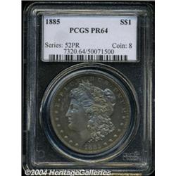 <table><tbody><tr><td><table> <TR><TD width="100%"><TABLE cellSpacing=1 cellPadding=3 width="100%" border=0><TBODY><TR><TD width="100%" bgColor=#79735c><FONT face=arial color=#ffffff size=3><B>Description</B> </FONT></TD></TR><TR><TD width="100%" bgColor=#ffffff><FONT face=arial size=2><B>1885 $1 PR64 PCGS.</B></I> Fully struck with flaming iridescence on each side, in deep shades of crimson, lemon-gold, amber, and cobalt-blue. Other than a pair of faint blemishes, in the left obverse field, the exquisitely preserved surfaces seem free of handling marks. A truly exceptional coin, and one which must be seen to be fully appreciated. </FONT></TD></TR></TBODY></TABLE></TD></TR></TBODY></TABLE><BR><A name=PricesRealized></A><TABLE cellSpacing=0 cellPadding=0 width="100%" bgColor=#000000 border=0><TBODY><TR><TD width="100%"><TABLE cellSpacing=1 cellPadding=3 width="100%" border=0><TBODY><TR><TD width="100%" bgColor=#79735c><A name=PR><FONT face=arial color=#ffffff size=3><B>Previous Prices from Heritage Auctions</B> </FONT></A></TD></TR><TR><TD bgColor=#f6f6ed><TABLE cellSpacing=0 cellPadding=0 width="100%" border=1><TBODY><TR><TD align=middle width="33%"><B>Date</B></TD><TD align=middle width="33%"><B>Service</B></TD><TD align=middle width="33%"><B>Price</B></TD></TR><TR bgColor=whitesmoke><TD width="33%"><B>06/08/2002</B></TD><TD width="33%">ANACS</TD><TD width="33%">$1,495.00</TD></TR><TR bgColor=whitesmoke><TD width="33%"><B>05/31/2001</B></TD><TD width="33%">PCGS</TD><TD width="33%">$1,638.75</TD></TR><TR bgColor=whitesmoke><TD width="33%"><B>08/02/1997</B></TD><TD width="33%">NGC</TD><TD width="33%">$1,667.50</TD></TR><TR bgColor=whitesmoke><TD width="33%"><B>10/07/1995</B></TD><TD width="33%">NGC</TD><TD width="33%">$1,760.00</TD></TR><TR bgColor=whitesmoke><TD width="33%"><B>03/04/1995</B></TD><TD width="33%">PCGS</TD><TD width="33%">$2,090.00</TD></TR><TR bgColor=whitesmoke><TD width="33%"><B>03/01/2001</B></TD><TD width="33%">PCGS</TD><TD width="33%">$1,782.00</TD></TR><TR bgColor=whitesmoke><TD width="33%"><B>01/01/2000</B></TD><TD width="33%">NGC</TD><TD width="33%">$2,300.00</TD></TR><TR bgColor=whitesmoke><TD width="33%"><B>09/01/1995</B></TD><TD width="33%">PCGS</TD><TD width="33%">$2,530.00</TD></TR></TBODY></TABLE></TD></TR><TR><TD bgColor=#ffffff><FONT face=arial size=1 ?>PLEASE NOTE: All prices realized reflect the final hammer price PLUS the buyer's premium in auctions that charge a buyer's premium. Each item has a notation at the top of the listing indicating whether that lot included a buyer's premium. Example: A item that sells with a final hammer price of $100 and a 20% buyer's premium will display with a price realized of $120. All information listed is intended to be as accurate as possible, but errors are possible. Please use this guide carefully and inform us of any inaccuracies. </FONT></TD></TR></TBODY></TABLE></TD></TR></TBODY></TABLE><BR><TABLE cellSpacing=0 cellPadding=0 width="100%" bgColor=#000000 border=0><TBODY><TR><TD width="100%"><TABLE cellSpacing=1 cellPadding=3 width="100%" border=0><TBODY><TR><TD width="100%" bgColor=#79735c colSpan=6><FONT face=arial color=#ffffff size=3><B>Price Guide*</B> </FONT></TD></TR><TR bgColor=#f6f6ed><TD align=middle><B>Grade</B> </TD><TD align=middle><B>Coin World<BR>(Trends)</B> </TD><TD align=middle><B>Numismedia<BR>Retail</B> </TD><TD align=middle><B>Numismedia<BR>Wholesale</B> </TD><TD align=middle><B>Coin<BR>Universe</B> </TD><TD align=middle><B>Heritage<BR>Value Index</B> </TD></TR><TR bgColor=#ffffff><TD align=middle>63</TD><TD align=right>---</TD><TD align=right>---</TD><TD align=right>$1,525.00</TD><TD align=right>$2,150.00</TD><TD align=right>$1,598.50</TD></TR><TR style="FONT-WEIGHT: bold" bgColor=#cccfdd><TD align=middle>64</TD><TD align=right>---</TD><TD align=right>---</TD><TD align=right>$2,350.00</TD><TD align=right>$3,700.00</TD><TD align=right>$2,129.00</TD></TR><TR bgColor=#ffffff><TD align=middle>65</TD><TD align=right>---</TD><TD align=right>---</TD><TD align=right>$4,450.00</TD><TD align=right>$6,850.00</TD><TD align=right>$4,058.33</TD></TR><TR bgColor=#ffffff><TD colSpan=6><FONT size=1>*All information listed is intended to be as accurate as possible, but errors are possible. No item may be returned or refused based on this information which is provided as a service to our customers. You should contact each pricing source directly to determine the accuracy of this information. </FONT></TD></TR></TBODY></TABLE></TD></TR></TBODY></TABLE><BR><TABLE cellSpacing=0 cellPadding=0 width="100%" bgColor=#000000 border=0><TBODY><TR><TD width="100%"><TABLE cellSpacing=1 cellPadding=3 width="100%" border=0><TBODY><TR><TD width="100%" bgColor=#79735c><FONT face=arial color=#ffffff size=3><B>Population Guide</B> </FONT></TD></TR><TR bgColor=#ffffff><TD align=middle><!-- Begin Output of Population Grid--><TABLE cellSpacing=0 cellPadding=0 width="100%" border=0><TBODY><TR><TD vAlign=center><TABLE cellSpacing=0 width="100%" border=1 cellsadding="3"><TBODY><TR><TD vAlign=center><TABLE cellSpacing=0 cellPadding=3 width="100%" border=1><TBODY><TR><TD vAlign=center align=middle bgColor=#f0f1e8 colSpan=2 <CENTER><FONT face=Arial size=2><B>PCGS Pop </B></FONT><CENTER></CENTER></TD><TD vAlign=center align=middle bgColor=#f0f1e8 colSpan=2><CENTER><FONT face=Arial size=2><B>NGC Pop</B></CENTER></FONT></TD></TR><TR><TD vAlign=center><FONT face=Arial size=2>(64)</FONT> </TD><TD vAlign=center align=right><FONT face=Arial size=2>56</FONT> </TD><TD vAlign=center><FONT face=Arial size=2>(64)</FONT> </TD><TD vAlign=center align=right><FONT face=Arial size=2>53</FONT> </TD></TR><TR><TD vAlign=center><FONT face=Arial size=2>(>64)</FONT> </TD><TD vAlign=center align=right><FONT face=Arial size=2>33</FONT> </TD><TD vAlign=center><FONT face=Arial size=2>(>64)</FONT> </TD><TD vAlign=center align=right><FONT face=Arial size=2>60</FONT> </TD></TR></TBODY></TABLE></TD></TR></TBODY></TABLE></TD></TR></TBODY></TABLE><!-- End Output of Populati