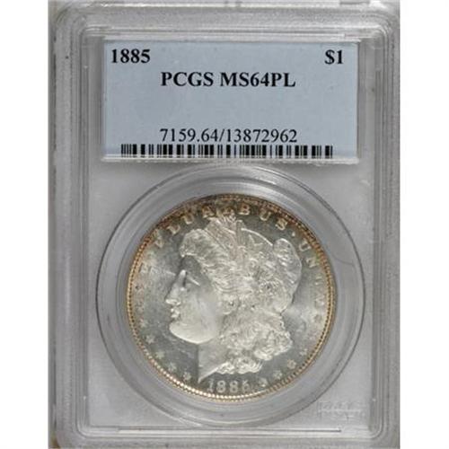 <B>1885 $1 MS64 Prooflike PCGS.</B></I> PCGS Population (458/212). NGC Census: (431/189). Numismedia Wsl. Price for NGC/PCGS coin in MS64: $100. (#7159)<BR><BR><B>Coin Engraver:</B> George T. Morgan<BR><BR><b>Shipping:</b> Coins & Currency (<a target="_blank" href="http://www.heritageauctions.com/common/shipping.php">view shipping information</a>)