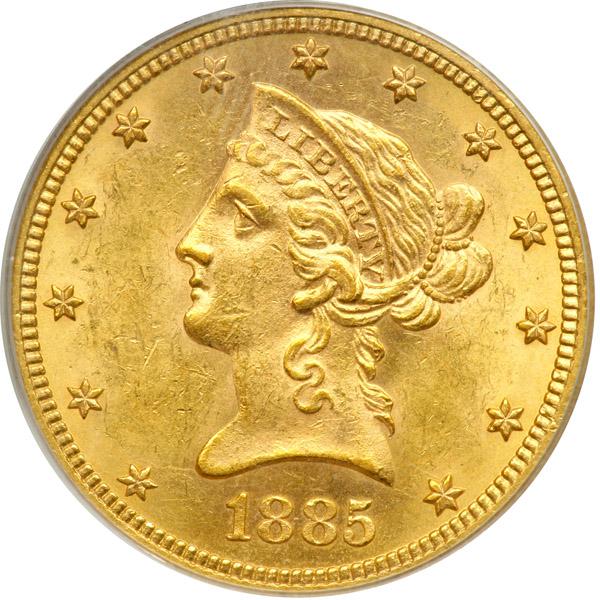 1885 $10 Liberty. PCGS graded MS-62. Attractive golden toning (PCGS # 8706) .