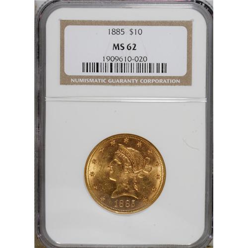 1885 $10 MS62 NGC. NGC Census: (103/34). PCGS Popu