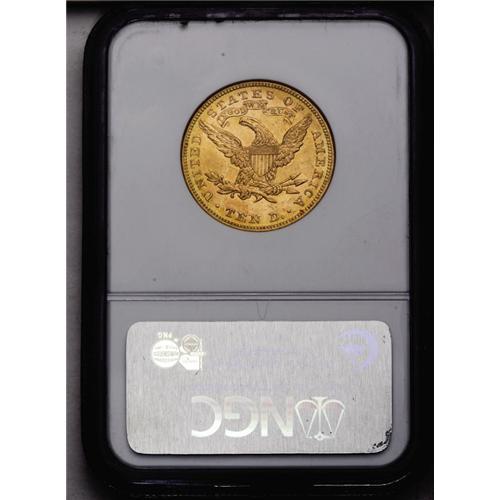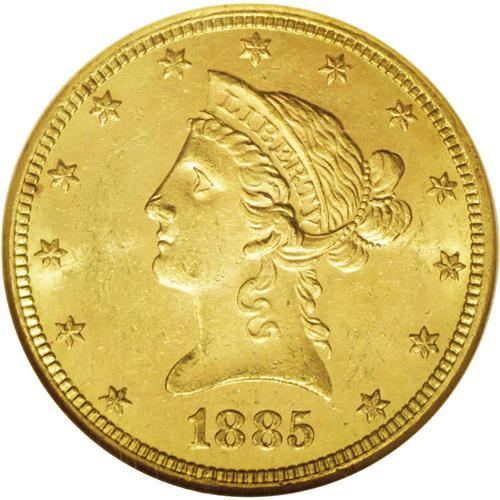 <B>1885<$10> MS63 NGC.</B></I> A second Select representative of this challenging P-mint eagle. Although moderately abraded on the obverse, the strike is razor sharp and both sides exhibit prooflike tendencies in the fields. Census: 18 in 63, 10 finer (4/06).