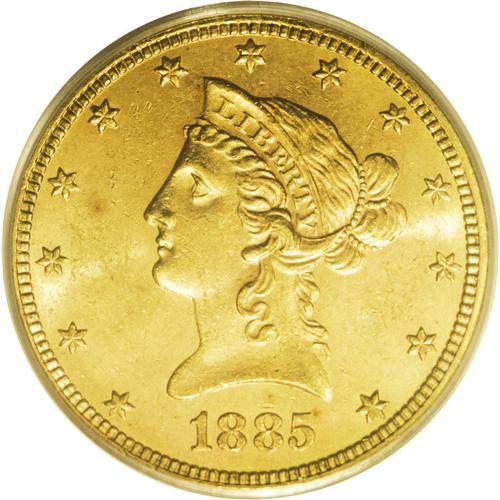 1885 $10 MS63 PCGS. The 1885 is a better date, and mor