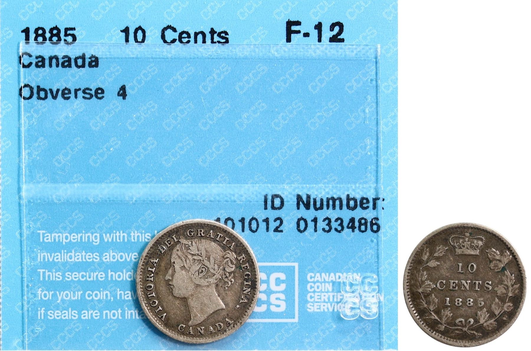 1885 10¢ "Obv.4" CCCS Fine-12