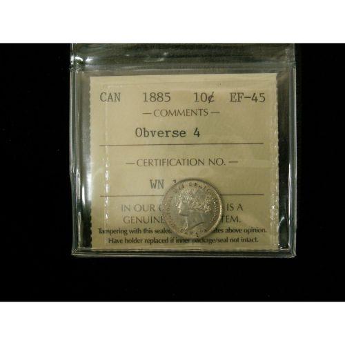 1885 10¢ Obv 4 ICCS EF45, Attractive and lustrous