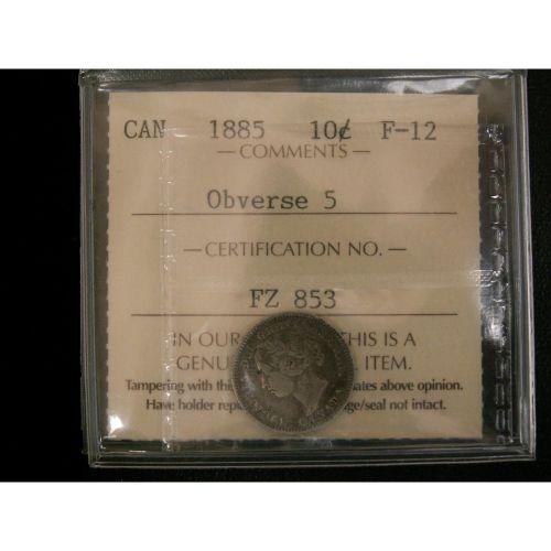 1885 10¢ Obv 5 ICCS F-12, scarce obverse