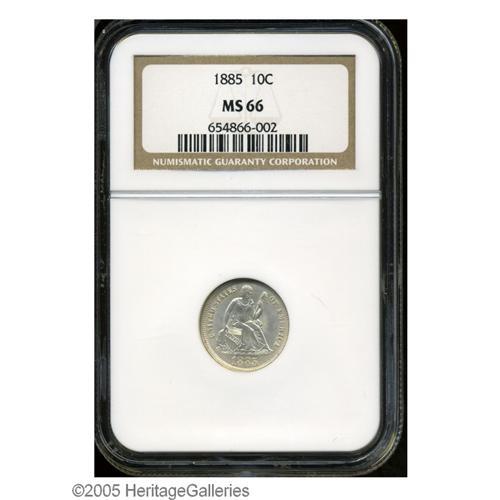 1885 10C MS66 NGC. This impressive and brilliant premi 1885[10C] MS66 NGC.