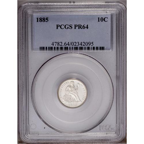 1885 10C PR64 PCGS. Sharply struck with an untoned, un 1885[10C] PR64 PCGS.