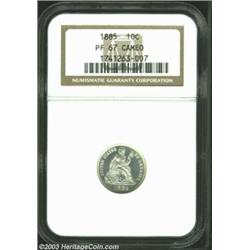 <table><tr><td><TABLE cellSpacing=0 cellPadding=0 width="100%" bgColor=#000000 border=0><TBODY> <TR><TD width="100%"><TABLE cellSpacing=1 cellPadding=3 width="100%" border=0><TBODY><TR><TD width="100%" bgColor=#79735c><FONT face=arial color=#ffffff size=3><B>Description</B> </FONT></TD></TR><TR><TD width="100%" bgColor=#ffffff><FONT face=arial size=2><B>1885 10C PR67 Cameo NGC.</B></I> A fully brilliant Gem example with frosty devices and watery fields. Well struck for the issue with only the slightest discernible weakness showing on Liberty's head. As a future identifier, a single planchet indention is noted above the cap on the pole. A remarkable cameo proof. Population: 10 in 67, 2 finer (7/03). </FONT></TD></TR></TBODY></TABLE></TD></TR></TBODY></TABLE><BR><A name=PricesRealized></A><TABLE cellSpacing=0 cellPadding=0 width="100%" bgColor=#000000 border=0><TBODY><TR><TD width="100%"><TABLE cellSpacing=1 cellPadding=3 width="100%" border=0><TBODY><TR><TD width="100%" bgColor=#79735c><A name=PR><FONT face=arial color=#ffffff size=3><B>Previous Prices from Heritage Auctions</B> </FONT></A></TD></TR><TR><TD bgColor=#f6f6ed>No Prior Data Recorded </TD></TR><TR><TD bgColor=#ffffff><FONT face=arial size=1 ?>PLEASE NOTE: All prices realized reflect the final hammer price PLUS the buyer's premium in auctions that charge a buyer's premium. Each item has a notation at the top of the listing indicating whether that lot included a buyer's premium. Example: A item that sells with a final hammer price of $100 and a 20% buyer's premium will display with a price realized of $120. All information listed is intended to be as accurate as possible, but errors are possible. Please use this guide carefully and inform us of any inaccuracies. </FONT></TD></TR></TBODY></TABLE></TD></TR></TBODY></TABLE><BR><TABLE cellSpacing=0 cellPadding=0 width="100%" bgColor=#000000 border=0><TBODY><TR><TD width="100%"><TABLE cellSpacing=1 cellPadding=3 width="100%" border=0><TBODY><TR><TD width="100%" bgColor=#79735c colSpan=6><FONT face=arial color=#ffffff size=3><B>Price Guide*</B> </FONT></TD></TR><TR bgColor=#f6f6ed><TD align=middle><B>Grade</B> </TD><TD align=middle><B>Coin World<BR>(Trends)</B> </TD><TD align=middle><B>Numismedia<BR>Retail</B> </TD><TD align=middle><B>Numismedia<BR>Wholesale</B> </TD><TD align=middle><B>Coin<BR>Universe</B> </TD><TD align=middle><B>Heritage<BR>Value Index</B> </TD></TR><TR bgColor=#ffffff><TD align=middle>66</TD><TD align=right>---</TD><TD align=right>---</TD><TD align=right>---</TD><TD align=right>---</TD><TD align=right>---</TD></TR><TR style="FONT-WEIGHT: bold" bgColor=#cccfdd><TD align=middle>67</TD><TD align=right>---</TD><TD align=right>---</TD><TD align=right>---</TD><TD align=right>---</TD><TD align=right>---</TD></TR><TR bgColor=#ffffff><TD align=middle>68</TD><TD align=right>---</TD><TD align=right>---</TD><TD align=right>---</TD><TD align=right>---</TD><TD align=right>---</TD></TR><TR bgColor=#ffffff><TD colSpan=6><FONT size=1>*All information listed is intended to be as accurate as possible, but errors are possible. No item may be returned or refused based on this information which is provided as a service to our customers. You should contact each pricing source directly to determine the accuracy of this information. </FONT></TD></TR></TBODY></TABLE></TD></TR></TBODY></TABLE><BR><TABLE cellSpacing=0 cellPadding=0 width="100%" bgColor=#000000 border=0><TBODY><TR><TD width="100%"><TABLE cellSpacing=1 cellPadding=3 width="100%" border=0><TBODY><TR><TD width="100%" bgColor=#79735c><FONT face=arial color=#ffffff size=3><B>Population Guide</B> </FONT></TD></TR><TR bgColor=#ffffff><TD align=middle><!-- Begin Output of Population Grid--><TABLE cellSpacing=0 cellPadding=0 width="100%" border=0><TBODY><TR><TD vAlign=center><TABLE cellSpacing=0 width="100%" border=1 cellsadding="3"><TBODY><TR><TD vAlign=center><TABLE cellSpacing=0 cellPadding=3 width="100%" border=1><TBODY><TR><TD vAlign=center align=middle bgColor=#f0f1e8 colSpan=2 <CENTER><FONT face=Arial size=2><B>PCGS Pop </B></FONT><CENTER></CENTER></TD><TD vAlign=center align=middle bgColor=#f0f1e8 colSpan=2><CENTER><FONT face=Arial size=2><B>NGC Pop</B></CENTER></FONT></TD></TR><TR><TD vAlign=center><FONT face=Arial size=2>(67)</FONT> </TD><TD vAlign=center align=right><FONT face=Arial size=2>2</FONT> </TD><TD vAlign=center><FONT face=Arial size=2>(67)</FONT> </TD><TD vAlign=center align=right><FONT face=Arial size=2>10</FONT> </TD></TR><TR><TD vAlign=center><FONT face=Arial size=2>(>67)</FONT> </TD><TD vAlign=center align=right><FONT face=Arial size=2>1</FONT> </TD><TD vAlign=center><FONT face=Arial size=2>(>67)</FONT> </TD><TD vAlign=center align=right><FONT face=Arial size=2>2</FONT> </TD></TR></TBODY></TABLE></TD></TR></TBODY></TABLE></TD></TR></TBODY></TABLE><!-- End Output of Population Grid--></TD></TR></TBODY></TABLE></TD></TR></TBODY></TABLE><BR><TABLE cellSpacing=0 cellPadding=0 width="100%" bgColor=#000000 border=0><TBODY><TR> Important notice: Heritage usually auctions material at the rate of 200-250 lots per hour. On some occasions eBay Live bid software or the Internet may not be able to keep up with the pace of the auction. We recommend placing a realistic absentee bid now as insurance to avoid disappointment. Occasionally the auctioneer may eliminate or reject an eBay Live bid, and the auctioneer may also reopen a lot after the close of the eBay live bidding (usually because we missed an audience bid), and may reject your bid even if it shows you as the winning bidder. By bidding via eBay Live, you agree that Heritage may award the lot to another bidder at its sole discretion under the circumstances described above or any other reasonable circumstances. Also please note that all Heritage lots purchased through eBay Live carry a 20% Buyer's Premium. Please make sure you read the Terms and Conditions before you bid.</TD></TR></TBODY></TABLE></TD></TR></TBODY></TABLE>