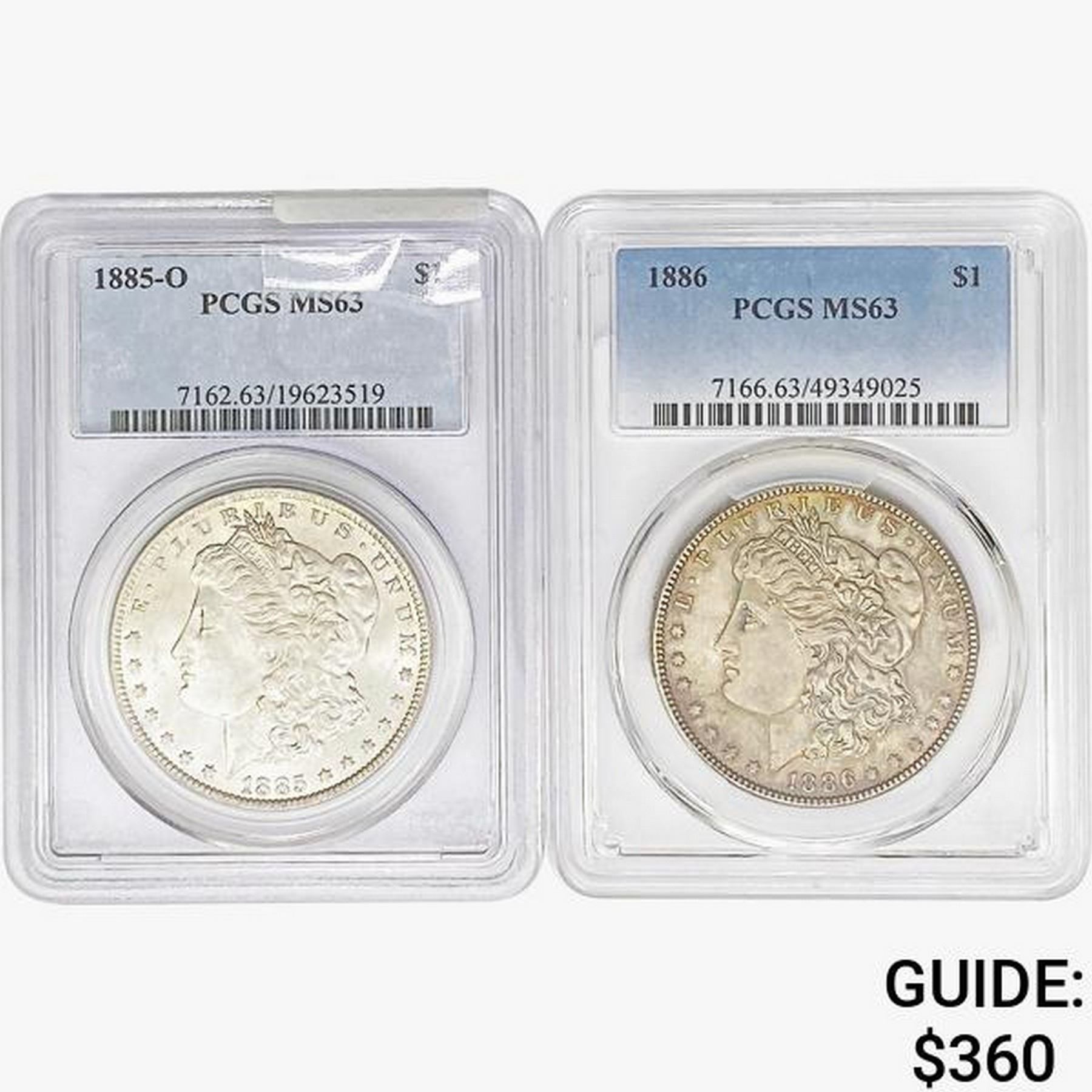 1885-1886 [2] Morgan Silver Dollar PCGS MS63