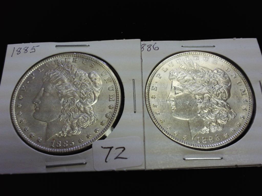 1885 & 1886 MORGAN SILVER DOLLARS (AU)