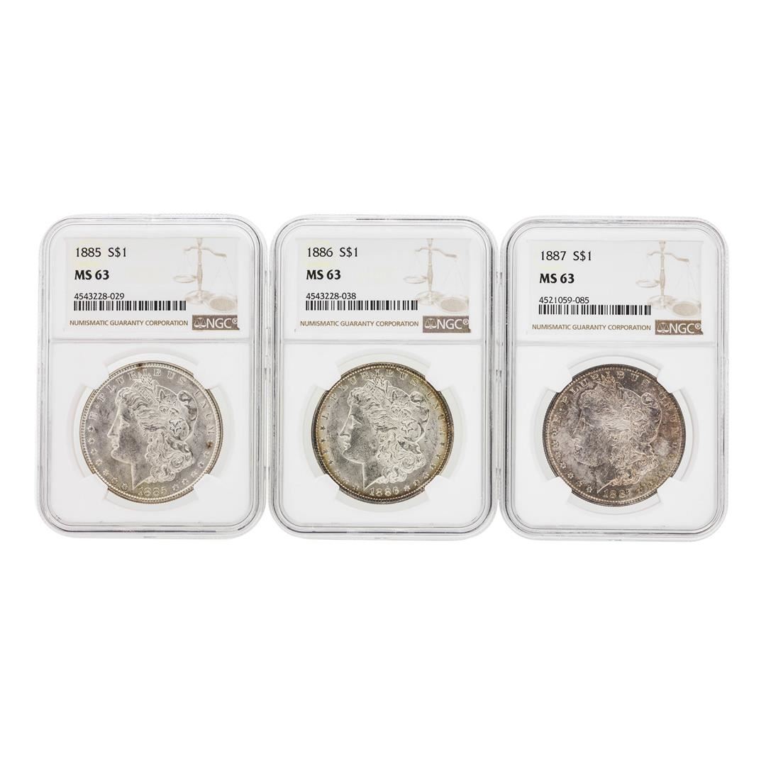 One 1885-1887 $1 Morgan Silver Dollar Coins NGC MS63. NGC Certified.