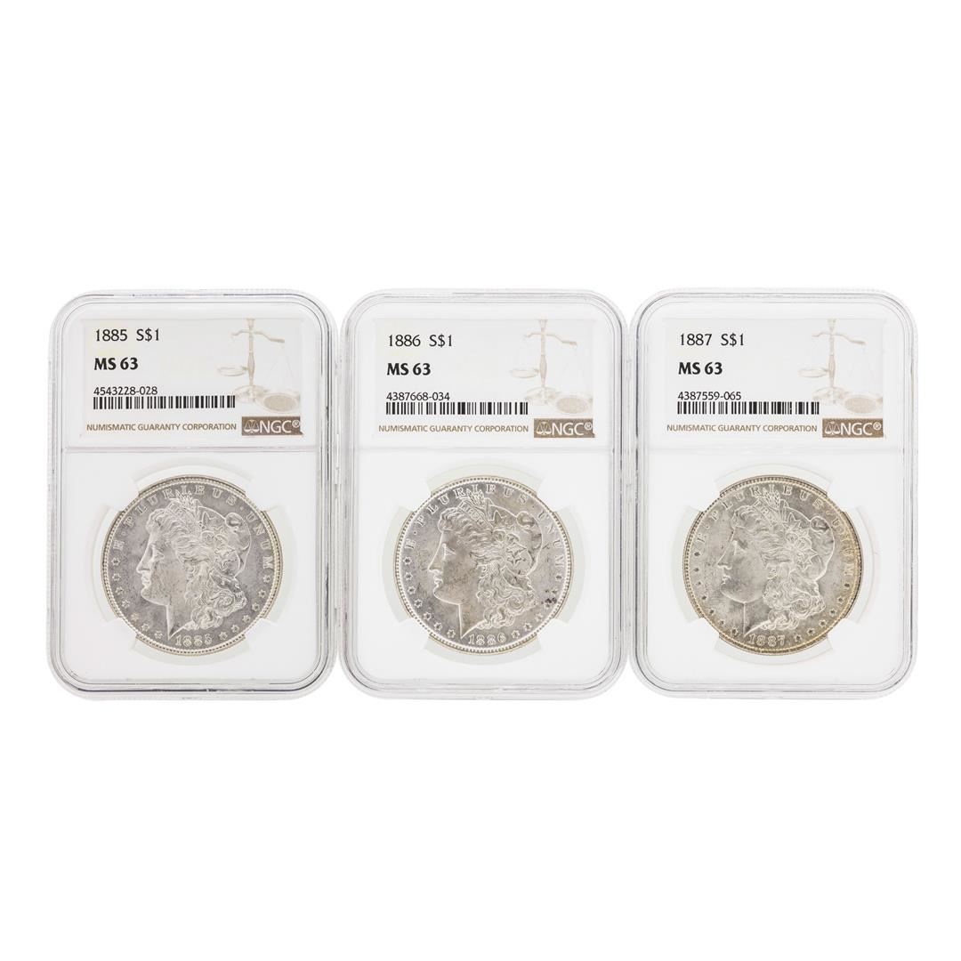 One 1885-1887 $1 Morgan Silver Dollar Coins NGC MS63. NGC Certified.