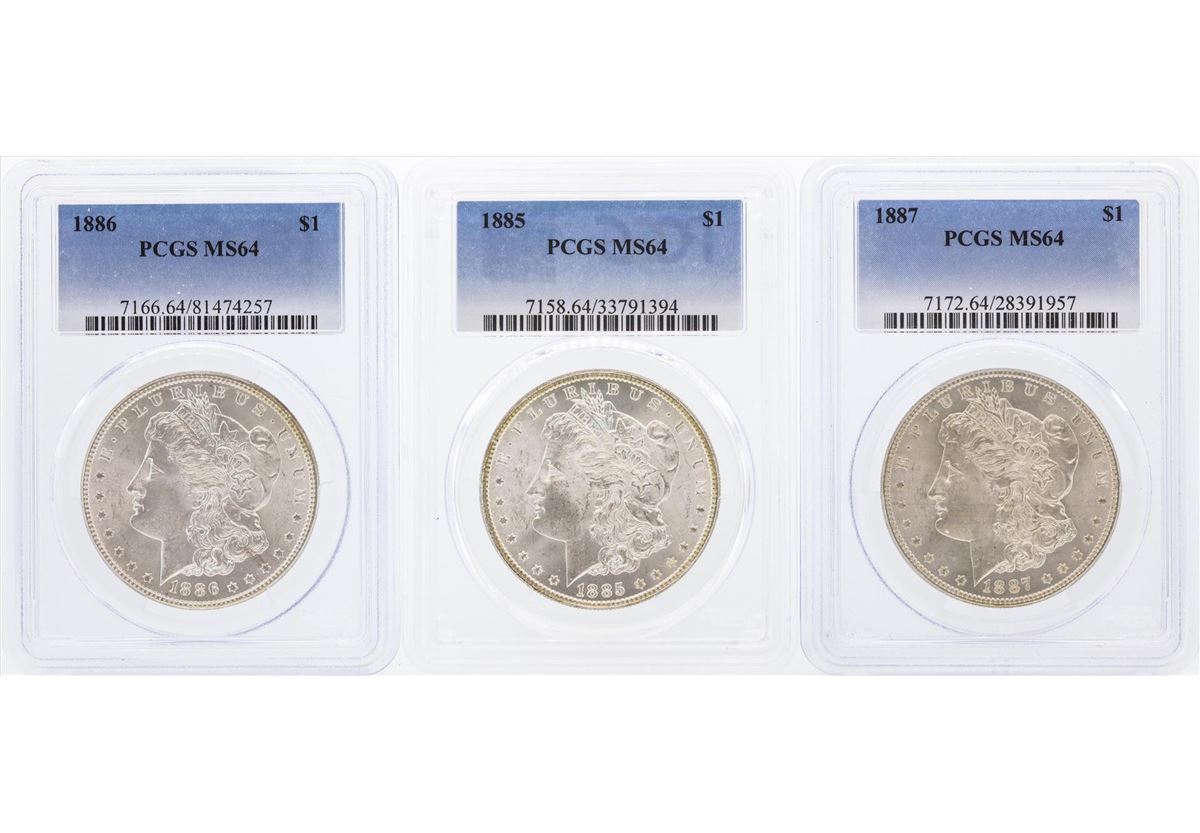 One 1885-1887 $1 Morgan Silver Dollar Coins PCGS MS64. PCGS Graded.